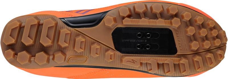 La technologie de flexion des orteils STRIDE par injection permet un mouvement naturel des orteils en dehors du vélo mais reste rigide pour le pédalage (indice de rigidité 6,0). La bande de roulement en caoutchouc SlipNot™ offre une traction sûre sur tous les terrains.