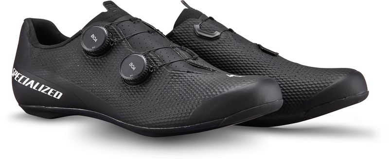 Plaque en carbone : La Torch 3.0 est dotée d'une plaque de carbone légère et unidirectionnelle qui permet d'équilibrer la rigidité de la chaussure, tout en utilisant moins de matériau, ce qui permet d'économiser du poids et d'assurer un transfert de puissance efficace, à l'image de son homologue S-Works. De plus, les grandes griffes en caoutchouc sur la semelle extérieure de la pointe et du talon offrent une plateforme stable et adhérente pour une transition en douceur lorsque l'on pousse sur le trottoir pour s'accrocher ou que l'on s'arrête à un feu de circulation.